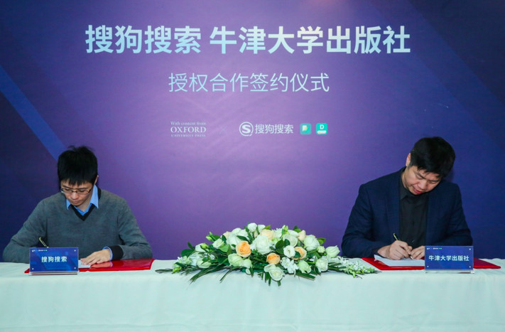 1月23日,搜狗查找与牛津大学出版社在北京举办签约典礼,两边就牛津词典的授权运用达到协作。协作后,搜狗查找旗下的搜狗翻译APP、搜狗词典APP、搜狗英文查找等英文服务类产品将引进牛津威望词典内容,为用户带来更专业、威望、地道的翻译及查词服务。