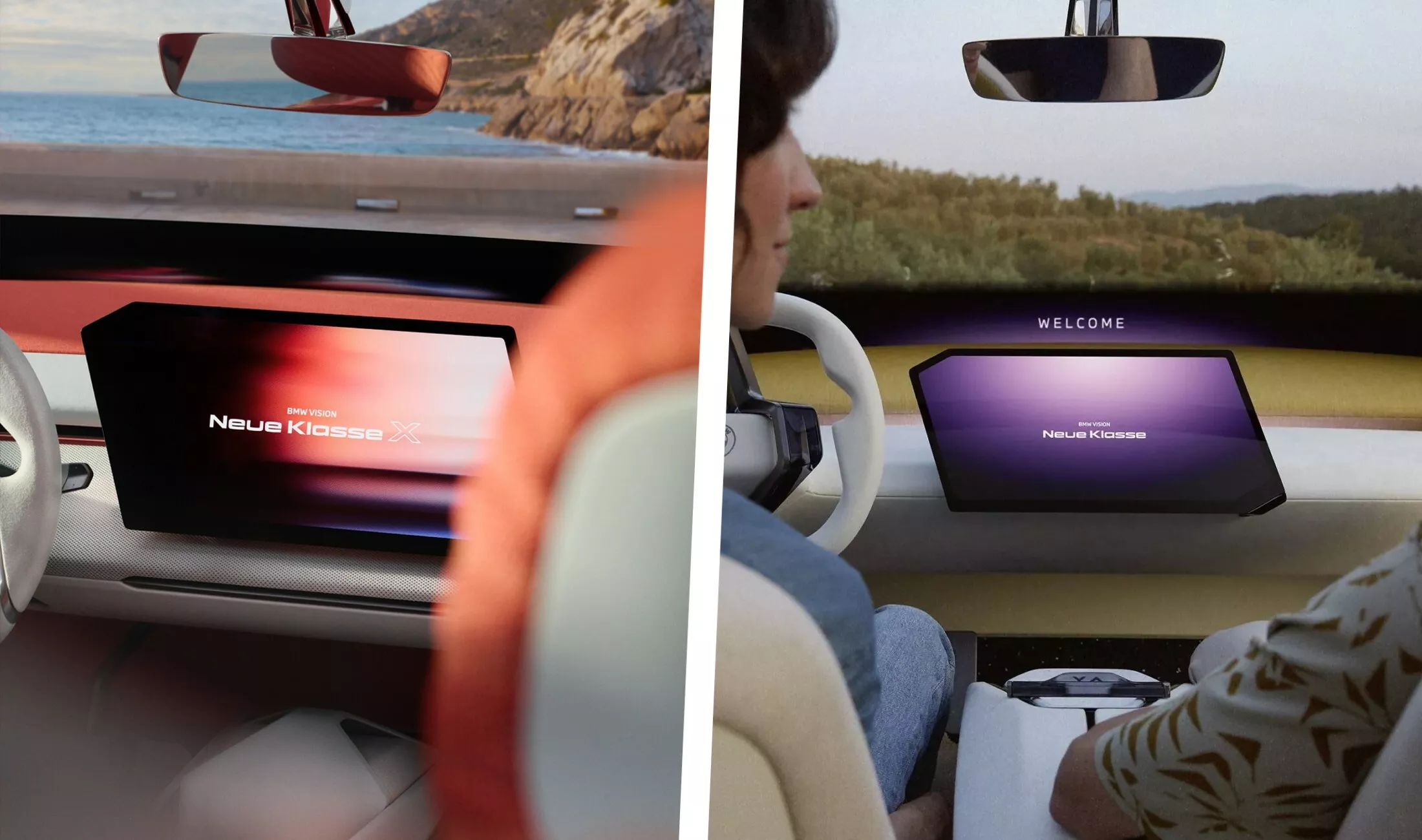 该概念的第一个官方预告片要点重视其仪表板。信息文娱显示屏与前期的 Vision Neue Klasse 类似,而 BMW Panoramic Vision 平视显示屏坐落挡风玻璃底部,接近后视镜。但是,Vision Neue Klasse X 具有共同的中控台、超薄空调通风口、从头规划的方向盘以及白色和橙色混合的新鲜配色计划。
